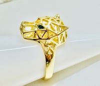 A beautiful and exquisite panther ring with green eyes in zirconia made of 14k gold plated from the exquisite jewelry line. Daily wear and high quality